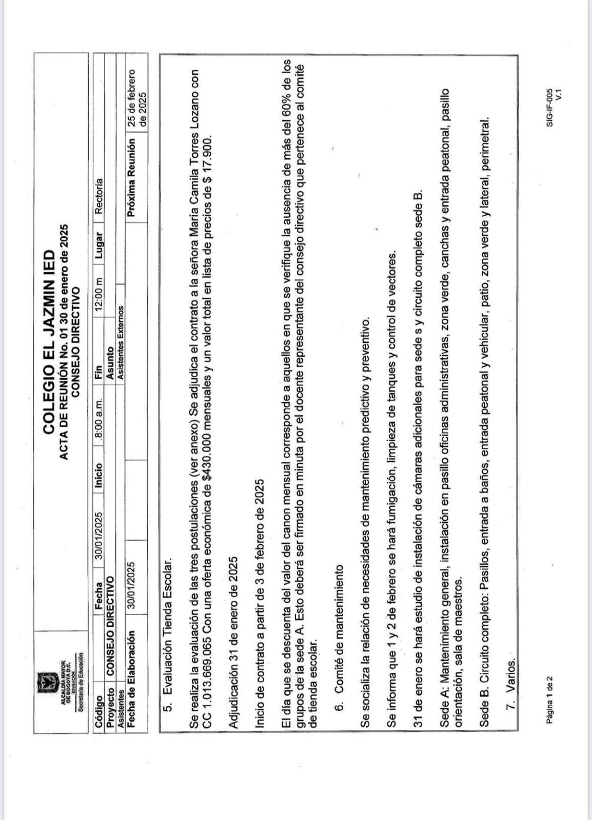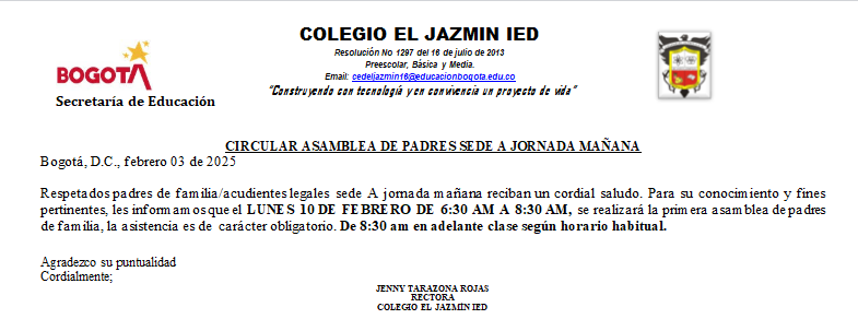 RESOLUCIÓN RECTORAL 001 DE 2025 PARA CRONOGRAMA ESCOLAR HORARIOS, FECHAS IMPORTANTES