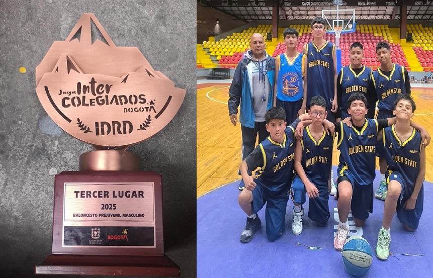 Nuestros jugadores de Baloncesto ganaron el Tercer Puesto en el campeonato Intercolegiado venciendo al equipo del Colegio Champagnat. Felicitaciones por este logro a los estudiantes y su director técnico el Profesor Germán Triana.