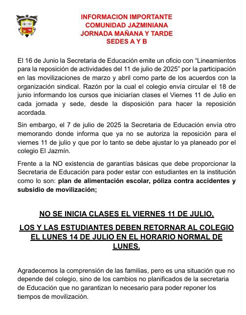REINICIO DE CLASES 14 DE JULIO HORARIO NORMAL