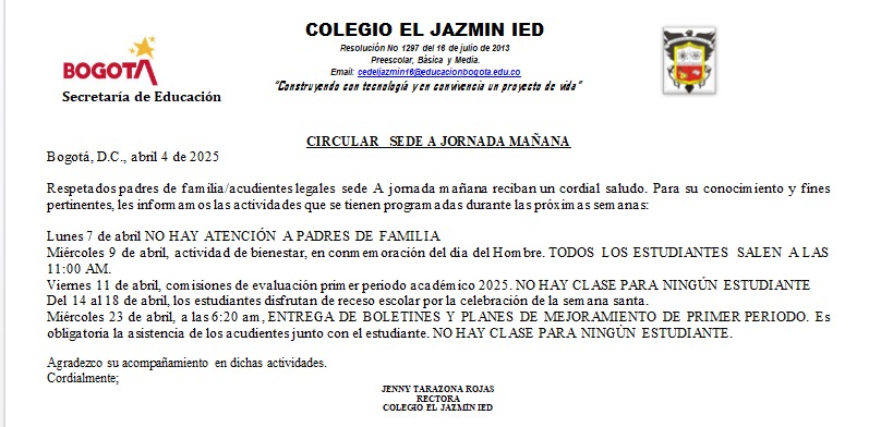 Esto aplica para sede A y B Jornada Mañana y Tarde