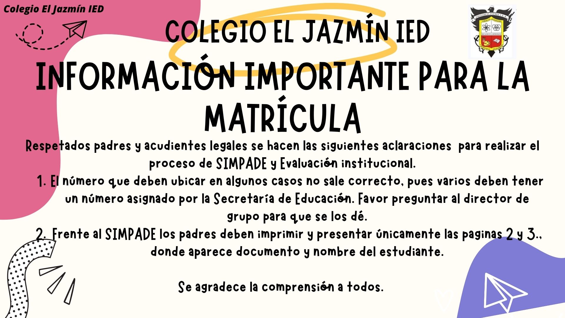 Se solicita DE CARACTER URGENTE a padres de familia y estudiantes que no han diligenciado el formulario SIMPADE, realizar este proceso antes del 15 de noviembre