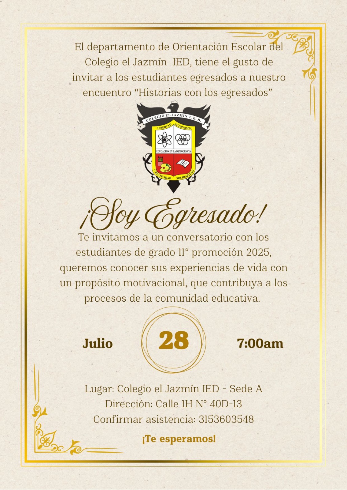 Egresados cordialmente invitados 28 DE JULIO , Depto Orientación