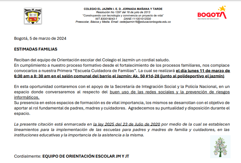 TE ESPERAMOS, HORARIO NORMAL EN CADA SEDE Y JORNADA ,