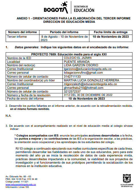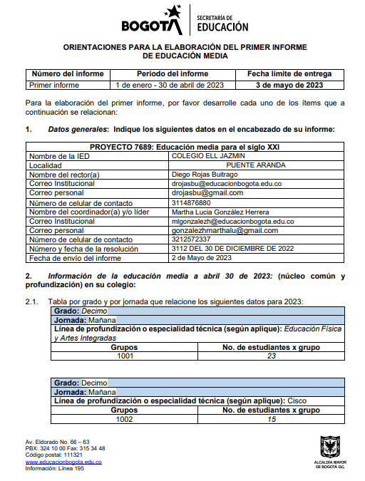 | Primer Informe DEM>>> | Segundo Informe DEM Colegio El Jazmín 2023>>> | Tercer Informe DEM>>> |