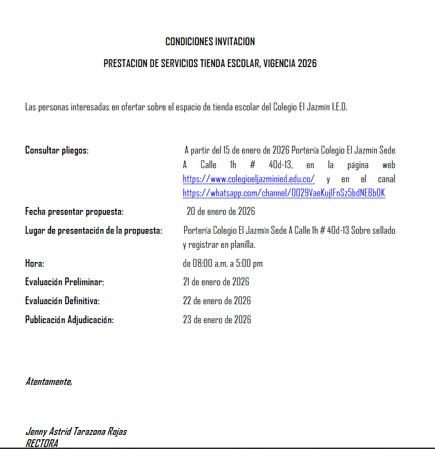 DESCARGAR TERMINOS DE LA CONVOCATORIA TIENDA ESCOLAR 2026>>>