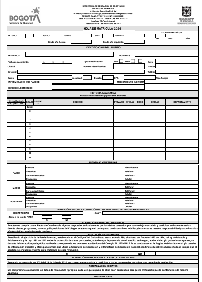 El día de Clausura el acudiente debe presentarse con este documento completamente
